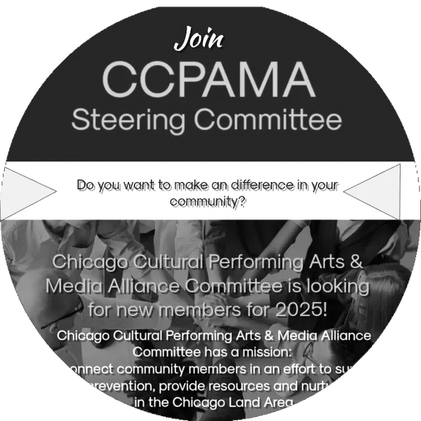 The CCPMA Steering Committee makes recommendations to the Chicago Cultural Performing Arts & Media Alliance for programming and funding guidance.